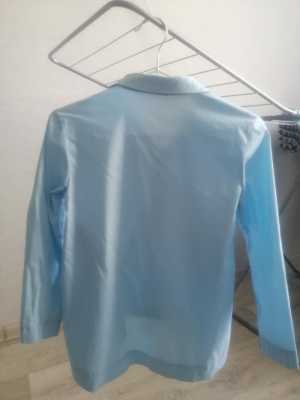 Рубашка голубая; рукав длинный; на пуговицах черного цвета