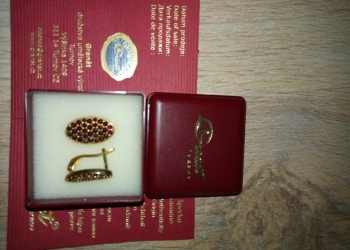 Продам серёжки Чешское Золото камень Красный Гранат с сертификатом, новые.