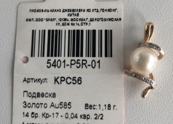 Вид товара: Украшения; Вид украшения: Ювелирные изделия;