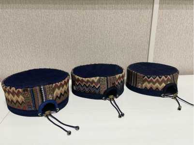 Есть в продаже шапочки куфи р.56 и р.58 из плотной х/ б ткани серо-зеленого цвета и гобелена с этническим орнаментом.