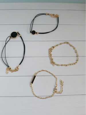 Женские браслеты с камнями. В наличии 4 штуки: 2 чёрных, 1 голубой и 1 розовый.