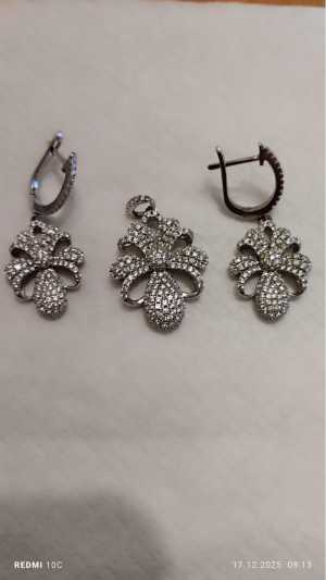 Набор серьги и подвеска из серебра с фианитами 925 пробы.