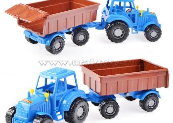 Трактор "Мастер" (синий) с прицепом №1 (в сеточке) Транспорт и спецтехника б/механизмов(пластик); Полесье Р-р упаковки: 44.