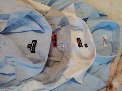 Рубашки в школу белая, серая, синяя в отличном состоянии. Размер 33, 34, с 7 лет размеры есть для начальной школы.