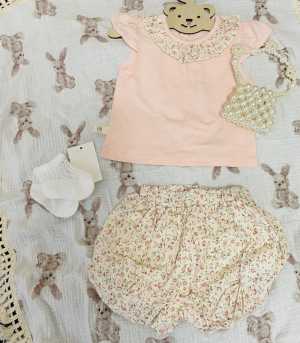 Продается комплект из розовой футболки и шорт для девочки, размер 74 см (9 месяцев).