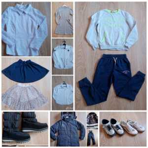 Состояние хорошее. Горнолыжный кастюм Зимние сапоги с мехом Две пары кросовок Спортивный кастюм Две юбки Три блузки...