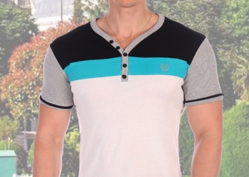 Футболка мужская Цена: 495 руб. Футболка прямого силуэта с угловым вырезом, украшенным пуговицами.