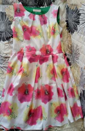 Летнее платье, яркое, лёгкое, красивое. С подкладом. На поясе резинка, можно носить с ремешком. Надевала 2 раза.