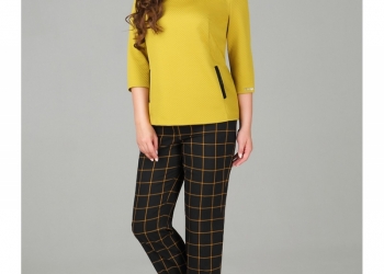Комплект женский состоит из блузона и брюк. Блузон расширенный книзу по переду карманы с декоративной листочкой.