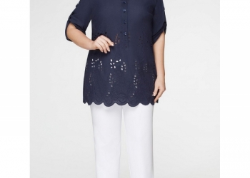 Ажурная вышивка по свей блузки как спереди так и сзади.Длина блузки по спинке 80, рукав застегивается на пату.