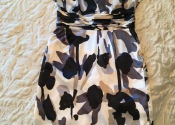 Платье летнее, производство Италия, белое с небольшим ч/б рисунком на юбке, тонкий сатин (х/б), на подкладке, отрезное по...