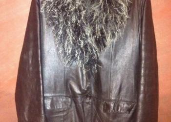 Куртка-пиджак с утеплителем (синтепон), из натуральной кожи, теплая зима, воротник натуральный овечий, отстегивается, кожа...