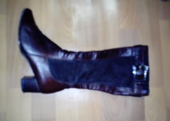Сапоги демисезонные, коричневые, кожа натуральная комбинированная с натуральной замшей, на худенькую ножку.