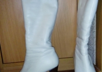 Сапоги зимние, белые, натуральная кожа, натуральный мех, на тонкую ножку, в очень хорошем состоянии.