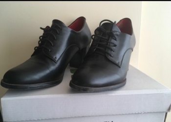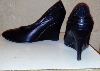 Туфли кожаные, черные, на танкетке, в отличном состоянии.