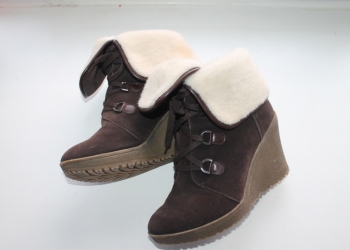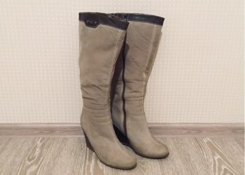 Продам женские зимние сапоги из натуральной кожи и натурального меха на танкетке. Приятный бежевый и коричневый цвет.