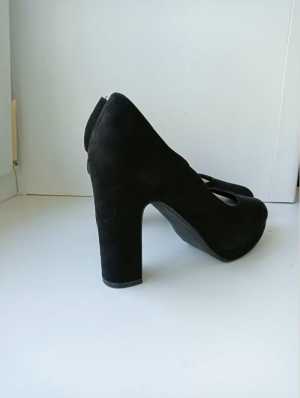 Продам чёрные замшевые туфли в хорошем состоянии. На достаточно высоком каблуке. Очень эффектно смотрятся.