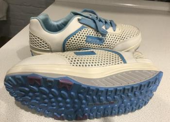 Кроссовки новые, белые с голубыми вставками из натуральной кожи.