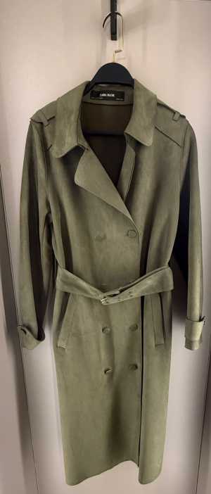 Плащ из искусственной замши.С поясом,Красивый оливковый цвет.Классическая модель.