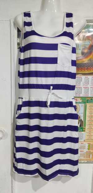 Платье-сарафан летнее, тонкое, с полосами фиолетового цвета, с карманами. Размер 44-46. Состав: полиэстер 90%, хлопок 10%
