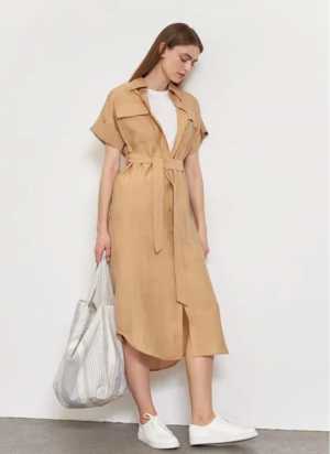 Платье-рубашка в стиле сафари, новое, размер 42. Выполнено в бежевом цвете из вискозы, на подкладке.