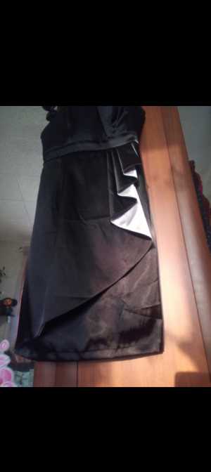 Платье женское. Спереди зелёное, сзади чёрное. Рукава 3/4 черного цвета. Снизу платья имеется молния, которая расстегивается.