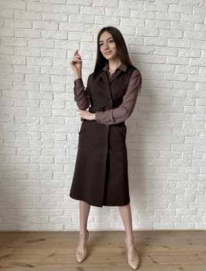 Сарафан ВИРЕЛЕ Размер 42. Цвет: Темно-шоколадный полуприлегающего силуэта. Без рукавов.