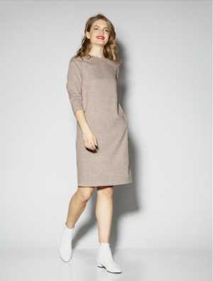 Платье кокон свободного силуэта ВИРИЛЕ. Размер 42. Цвет: Светло-бежевый.