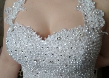 Продаю жемчужное платье, камни сваровские-очень светятся и переливаются ! Платье со шлейфом.