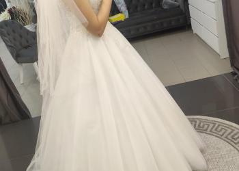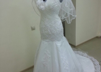 продам свадебное платье, совершенно новое, осталось после закрытия салона, шлейф, вышивка, цвет белый, р-р 44-46, продаю без...