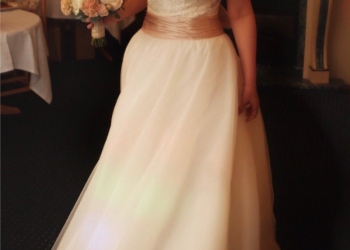 Платье в отличном состоянии, цвет шампань, очень красивое, одевалось один раз, подойдёт на девушек от 44р до 48р, корсет...