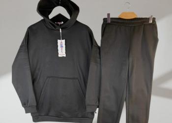 Новый женский костюм утеплённый, футер с тонким начосом, чёрный цвет. Есть в наличии всех размеров. Модный, оверсайз.