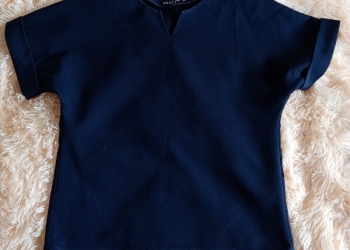 Школьная блузка синяя, выглядит как футболка, на девочку 9-12 лет