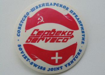 Значок Советско - Швейцарское предприятие Сервеко . пластик