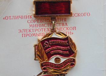 Значки СССР Отличник Социалистического соревнования Министерства Электротехнической промышленности. с удостоверением.