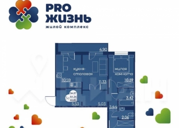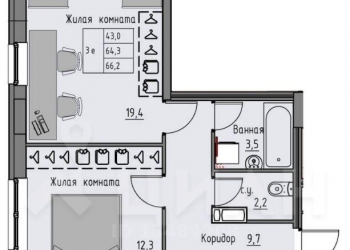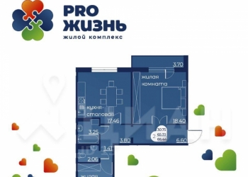 Квартира от надежного застройщика! Срок сдачи - 3-й квартал 2020 г. общая проектная площадь двухкомнатной квартиры 66,34 кв.