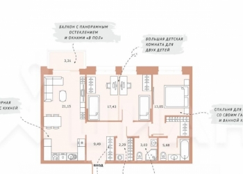 Тип объявления: Продам; Количество комнат: 3; Тип дома: Монолитный; Площадь: 68; Этаж: 13; Этажей в доме: 17;