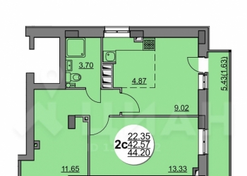Продается 1-комнатная квартира, в строящемся доме (2,3 секции), срок сдачи: I-кв. 2022, общей площадью 43.30 кв.м.