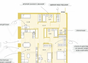 Продается 3-комнатная квартира, в строящемся доме, срок сдачи: II-кв. 2021, общей площадью 73.60 кв.м., на 13 этаже.