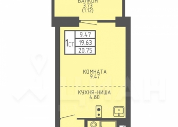 Продается студия, в строящемся доме, срок сдачи: III-кв. 2021, общей площадью 20.75 кв.м., на 16 этаже.