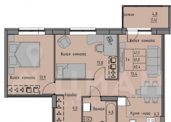 Торопитесь приобрести квартиру по выгодной цене! 3-комнатная квартира 59.12 кв.м.