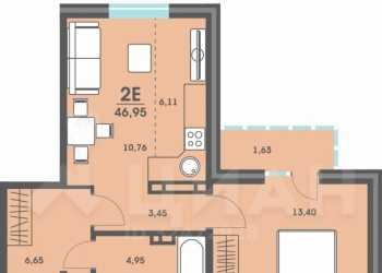 Продается 1-комнатная квартира, в строящемся доме (2,3 секции), срок сдачи: I-кв. 2022, общей площадью 46.95 кв.м.