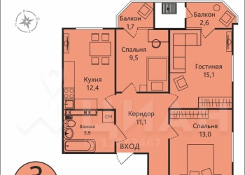 Продается 3-комнатная квартира, в строящемся доме (корпус 2), срок сдачи: II-кв. 2022, общей площадью 65.81 кв.м.