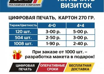 АКЦИЯ НА ПЕЧАТЬ ВИЗИТОК: • полноцветная печать с одной стороны на картоне 270 гр., тираж 1000 шт - по 1 руб 90 коп./шт.