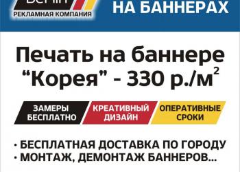 Широкоформатная и интерьерная печать баннеров. Печать на баннере "Корея": - широкоформатная печать - 330 руб. / кв.м.